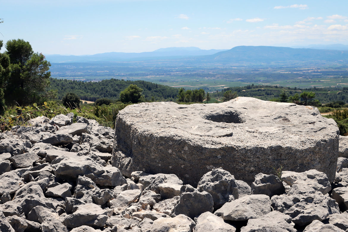«Le sentier des Meulières», au nord des vignobles du Minervois, dans l’Hérault. Là, dans cette région de sécheresse et de garrigue, du Moyen Age jusqu’au XIXe siècle, des hommes ont brisé la roche de calcaire gréseux pour y tailler des meules destinées aux moulins de toute la région. De la carrière de Saint-Julien-des-Meulières ne subsiste qu’un labyrinthe de caillasse parsemé de massives pierres meulières abandonnées.