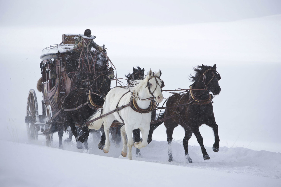 L’ambiance musicale – et donc cinématographique, allions-nous écrire – y est beaucoup moins romantique. Même pas du tout. C’est en fait une atmosphère sur mesure que le compositeur arrive à créer pour le réalisateur: celle d’un western noir en huis clos, entouré d’un environnement blanc et glacial. Le thème principal est présenté en grande pompe à l’ouverture du film, quand l’écran présente un crucifix sous la neige. Basson, cordes et cuivres composent ce qui n’est pas même une mélodie, mais un murmure lugubre, qui colle à la perfection au prologue et annonce la violence à venir. Le thème sera repris sous diverses variations par la suite.