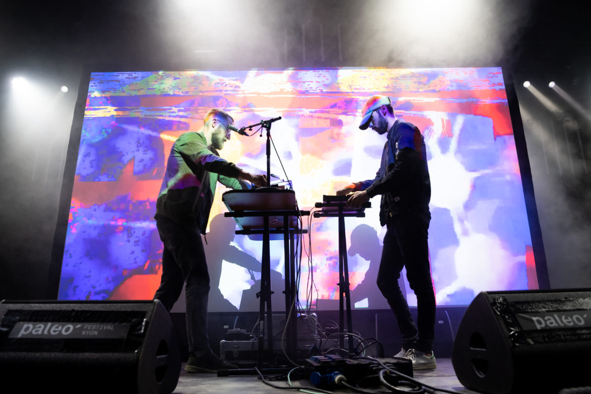 B77, duo musical d’électro psychédélique, s’est produit le mardi 22 juillet au Paléo festival. L’occasion pour nous de rencontrer ce groupe fribourgeois formé de Léopold et de Luca avant leur show audiovisuel. Les deux artistes mystérieux, se décrivant plutôt comme des amoureux des disques désireux d’écrire leur musique «dans leur bulle», nous ont tout de même confié quelques informations sur leur façon de voir la scène au détour d’un entretien sur la réalisation de leurs sons.
